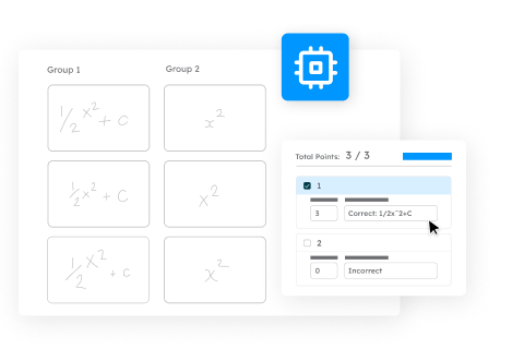Accelerate feedback loops by using AI to cluster like responses to grade all at once, and inform students’ next steps for learning. Dynamically update scoring and apply it retroactively to previously graded work to ensure consistency and fairness.